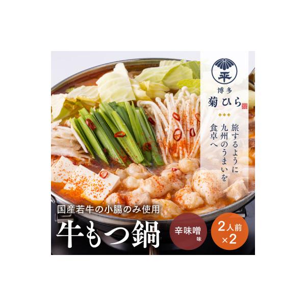 博多菊ひらの厳選国産若牛もつ鍋セット(辛味噌味2人前×2セット)(那珂川市)